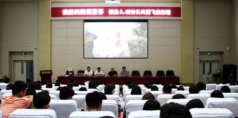 68日,为提高毕业生就业质量,增加就业选择,永利3044noc邀请西安长风电子科技有限公司总经理谢飞走进《数媒大讲坛》,在我校学术报告厅作了《缤纷的数媒世界》主题报告。永利3044noc院长李恒杰教授、校企合作办主任蔺国梁副教授出席并倾听了此次报告,14级数字媒体技术、15级多媒体班和计应班全体学生,以及15级软件班和网络班班干部代表参加了此次报告会。