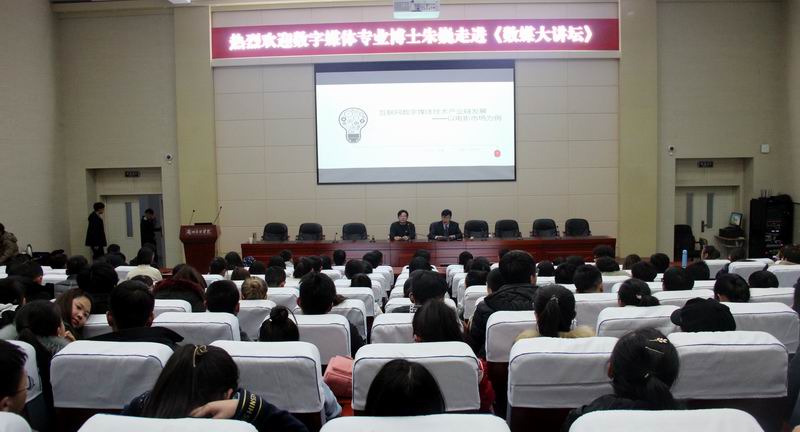 12月19日晚上18:30,海外留学博士、南阳理工学院数字媒体教研室主任朱巍走进兰州文理学院《数媒大讲坛》,为我校数媒学院数字媒体技术及艺术专业全体学生作了题为《互联网数字媒体技术产业价值链发展》的主题报告,现场气氛热烈,座无虚席,我校数媒学院相关教师和学生近300人聆听了此次报告。报告会由数媒学院院长李恒杰教授主持。