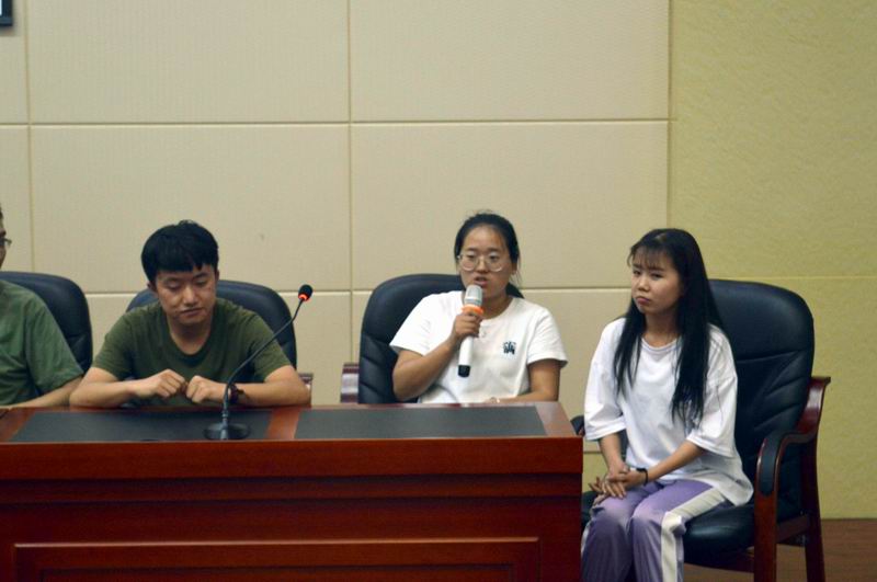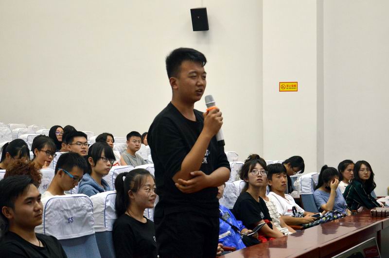此次座谈会上,李恒杰院长首先对已经考研成功的十二位同学表示祝贺,对他们在毕业前百忙之中抽时间参会表示感谢,号召全体意向考研学生,戒骄戒躁,认真汲取备考经验,向各位学长学姐学习。随后,十一位学长学姐依次介绍了自己的考研经历、择校择专业、备考经验及所走的弯路。已被西安理工大学研究生录取的虢纯学姐说到“首先要明确考研的想法,其次是要一直坚持下去,在学习过程中要一直努力,并且找到合适的方法,攻克自己薄弱的项目。控制好自己的时间,劳逸结合,一定要调整好后期的精神状态”。已被河南师范大学录取的张倩男学长,从跨专业考研的角度为现场学生做了经验分享。分享过程中,现场同学积极提问,就自己所疑惑的考研问题与师哥师姐们交流互动,师哥师姐们结合自身考研经历,认真回答每一个问题,并祝愿所有考研的师弟师妹都能考上理想的学校。