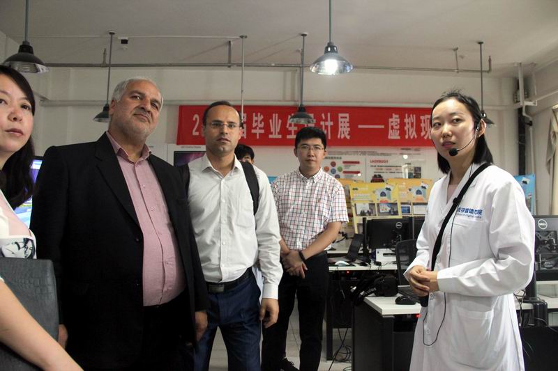 6月27日,正值伊朗代表团访问我校期间,内沙布尔大学校长萨迪吉教授(Sadeghi)、副校长梅哈尼教授(Mehrani)、文化代表阿泰·贾拉尔博士(Ata.o.jalayer)一行在我校党委校长办公室副主任马争朝、学校外事办副主任周景春老师的陪同下,莅临我校永利3044noc实验教学中心,参观了永利3044noc2018届毕业生毕业设计展。