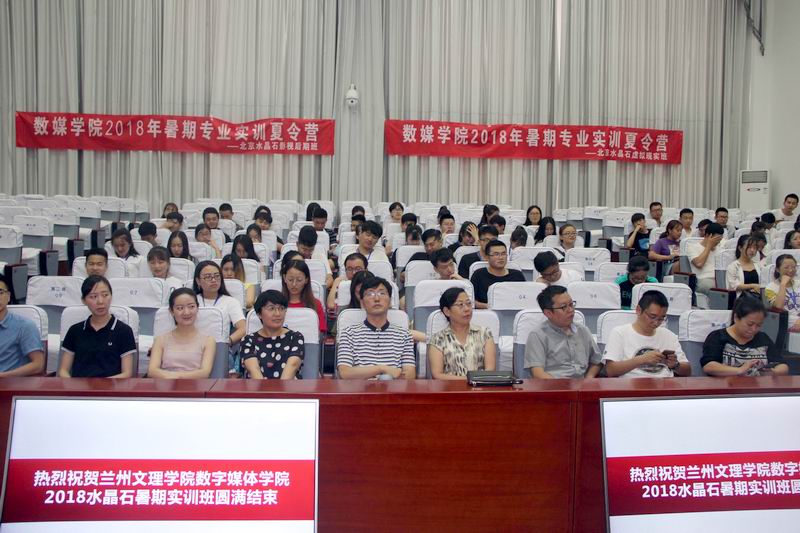7月27日下午,永利3044noc在我校学术报告厅召开2018年永利3044noc暑期专业实训夏令营——北京水晶石实训成果汇报会,数媒学院院长李恒杰、书记陈小琴副院长邢玉娟、相关专业主任及相关教师、相关班级班主任出席了此次汇报会,企业领导、专家及数媒学院影视后期、虚拟现实两个实训逻辑班的全体学生参加了此次汇报会,会议由北京水晶石部门经理韩晓宇主持。