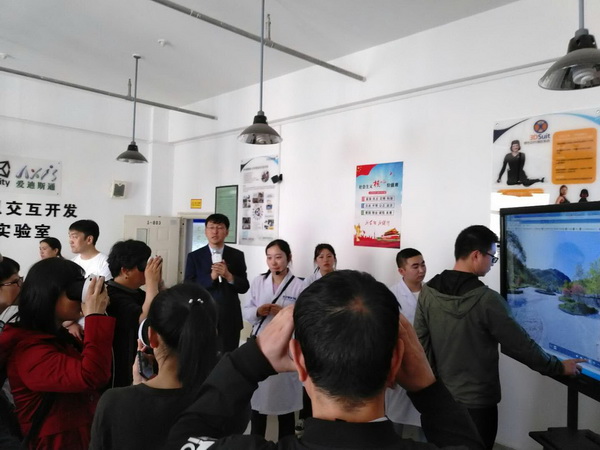 下午14:00,在李恒杰院长的陪同下,出席此次论坛的各位领导和专家参观了我院数字媒体实验中心、甘肃大乘影视校企合作实训基地、甘肃读者动漫校企合作实训基地、国家级众创空以及创新创业学生工作室等,观看了我院学生的获奖作品和实训作品。各位领导和专家亲身观摩和体验了师生创作的虚拟现实、影视后期、游戏动画作品,对我院实验室建设和学生作品表示高度赞赏。