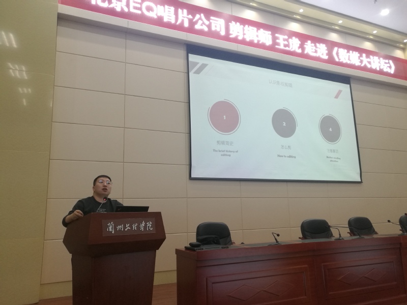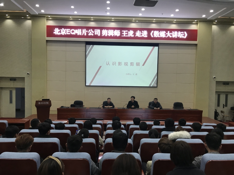 3月01日中午14:30,北京EQ唱片公司剪辑师王虎走进兰州文理学院《数媒大讲坛》,为我校数字媒体技术专业的同学作了题为“认识剪辑”的主题报告。现场数字媒体技术专业学生认真聆听讲座,积极回答问题,了解剪辑的专业知识,同时获悉剪辑师的生活与工作。报告会由永利3044noc院长李恒杰教授主持。