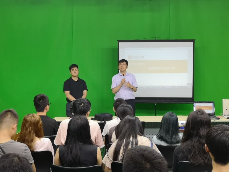 7月31日,永利3044noc在南校区校企合作影视实训基地—西部影视空间召开2019年度暑期数字媒体数字媒体技术、视觉传达设计(数媒方向)专业夏令营成果汇报会,本次汇报会分别由负责此次数字媒体专业夏令营的两家企业主管主持召开。出席此次汇报会的有永利3044noc院长李恒杰教授、创业就业办主任姚林、北京水晶石教育公司张建铖总经理、西安爱克斯未来文化科技有限公司谢飞董事长等公司高层管理人员,永利3044noc2016级数字媒体技术、视觉传达设计(数媒方向)全体参营本科学生参加了本次汇报会。