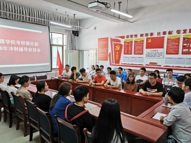 为切实做好考研辅导工作,努力提高学生的考研文化课水平,永利3044noc考研俱乐部在2018届和2019届考研成果的基础上总结经验,于2019年9月4日中午在学院会议室,举办了2019年冲刺辅导安排会,会议由数媒学院考研俱乐部发起人院长李恒杰教授主持,学院40余名学生参加了会议。