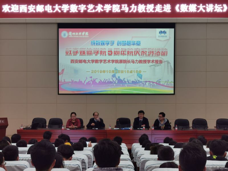 2019年10月23日晚上,西安邮电大学数字媒体艺术学院原院长马力教授走进《数媒大讲坛》,为数媒院数字媒体技术专业、软件工程专业、数据科学与大数据技术专业学生代表做了题为“浅谈人工智能的应用于挑战——以深度学习为例”的学术报告。永利3044noc院长李恒杰教授出席此次报告会,报告会由学院数字媒体技术系主任黄珍副教授主持。