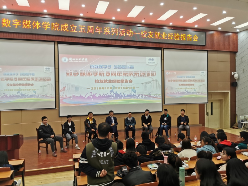 随后,参会的2018届、2019届校友对学院成立五周年表示热烈的祝贺,并对学院精心的培养表示衷心的感谢。学长分别介绍讲述了自己在校期间积极参加各项竞赛的实例,建议在校生一定要把握学习机会,积极参加各类全国竞赛,不断的提升自己的眼界,提高自己的实践应用能力。同时王虎学长强调:一定要尽快明确目标,并全身心地投入,认真准备,不断接受新的挑战,才能不断缩小自己的差距。此外,何瑜学长还列举了面试中HR常提问的问题,并一一给出较为合理的回答方式。在分享的过程中,我院的优秀毕业生毫无保留的将自己的经历和经验做了分享,希望自己的学弟、学妹有一个更好的未来,实现自己的价值。
