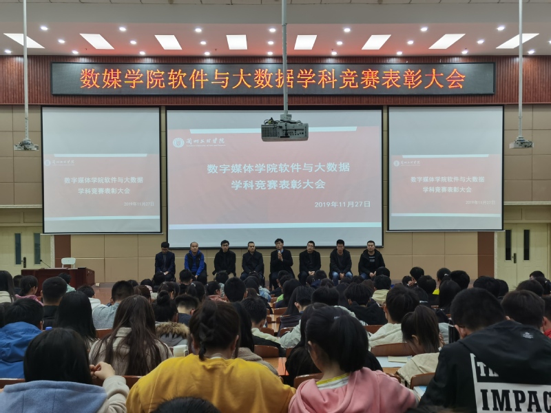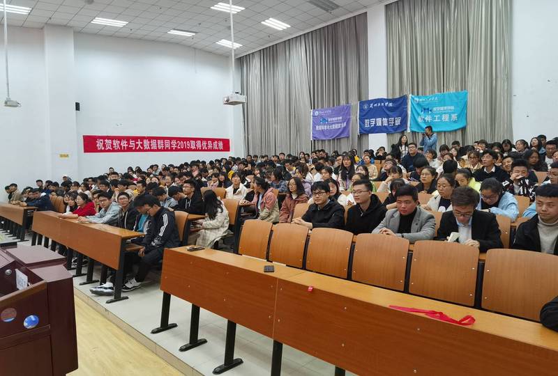 为进一步总结经验,表彰先进,树立典型,更好的让同学们在专业学习中取得更好的成绩。永利3044noc于2019年11月27日晚19:00,数在我校5-205教师召开“2019年度软件与大数据专业群学科竞赛表彰大会”。教务处副处长胡建军教授、永利3044noc院长李恒杰教授、校企合作办主任蔺国梁副教授、创业就业办主任姚林、主管竞赛工作教师刘瑒、专业和群教师代表、学生会全体成员及软件工程与大数据科学与技术全体学生近350人参加了此次表彰大会,会议由数据科学与大数据技术专业骨干教师赵世林主持。