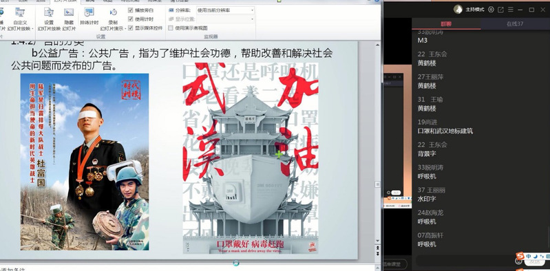 在寒假期间,我参加学习了学校组织的网上授课平台专题培训,开学前一周进行课程试讲与细节完善,提前了解学生的硬件与网络条件,选择最为畅通便捷的新媒体授课平台。这学期,我讲授的《广告设计》课程中,有丰富的案例教学环节需要老师引导、启发学生进行探索学习与互动,主要包括课上QQ课堂直播平台和课下QQ群进行答疑互动,从开学一周以来的教学情况看,学生的互动频率得到大大提升。以往课堂中,有的同学可能比较腼腆没有发言,或者声音小,夹杂在大家的发言声中没有被听见,如果一个个被听见,又占用太多教学时间。但在网络平台,每个人都有一个“麦克风”,每一个发言都拥有被看到的机会,图文形式的互动让信息更直观,沟通效率更高。在教师的引导和鼓励下,学生的学习更有主动性和参与感、成就感,师生在互动中学习互鉴、教学相长。
