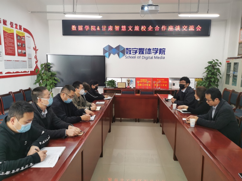 为了进一步加强永利3044noc的校企合作,深化产教融合,提高应用型人才培养和产业能力水平。4月7日上午10:00,永利3044noc邀请甘肃智慧文旅集团常务副总经理刘瑛和战略投资总监周庭金一行来学院就校企合作与专业建设进行研讨。永利3044noc院长李恒杰,副院长黄珍,数据科学与大数据技术教研室主任徐成俊,数字媒体艺术教研室主任王士勇,校企合作办主任蔺国梁,实验中心主任洪晓芬,创新创业办主任姚林、数字媒体艺术教研室骨干老师韩延峰及数据科学与大数据技术专业骨干老师赵世林、岳庆生参加了本次校企合作座谈交流会,不在校的老师在家同步钉钉远程参会。