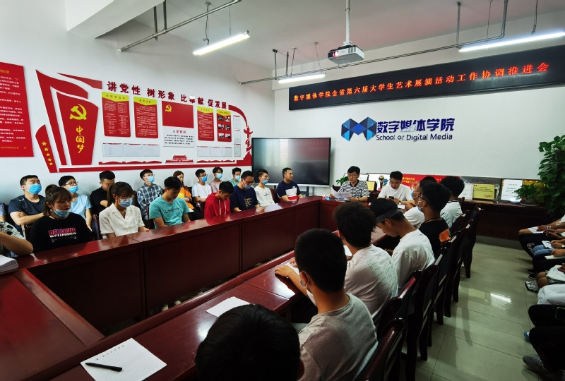 为保证我校顺利参加全省第六届大学生艺术展演活动,6月23日下午4:30,数媒学院在学院会议室召开《永利3044noc第六届大学生艺术展演工作协调推进会》。数媒学院院长李恒杰、分团委霍峒宇、教学科研办刘陽、创业就业办姚林及各社团负责人、工作室负责人、各班班长,团支部书记参加了会议,会议由李恒杰院长主持。