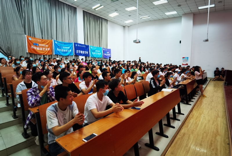 数媒副院长黄珍副教授与科技处陈兵建老师为我院崔国浩、侯云飞等“竞赛之星”颁发荣誉证书,以表彰各位竞赛之星在大学四年时间里积极践行我院以赛促学的数媒精神;侯云飞同学作为竞赛之星的代表发言:“同学们应当积极参加各类国家级、省级专业竞赛,这是一场试炼,成功与否都将会为各位同学带来深刻有趣的经历。”