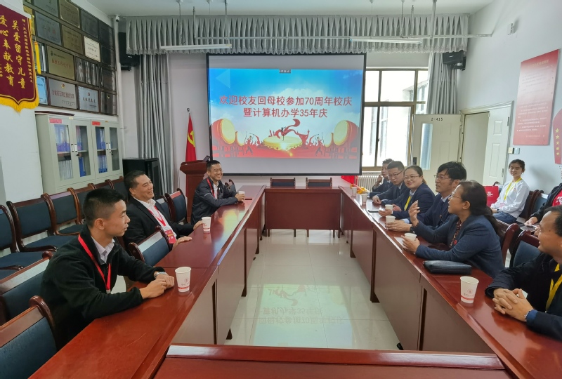 为促进母校与校友情感、信息的交流沟通,助推校友在自身事业领域的蓬勃发展,使校友与母校在感情和事业上联系得更加紧密。9月20日上午,兰州文理学院校方邀请85级计算机专业优秀校友深圳万测董事长安建平、93级计算机专业优秀校友北京杰软科技总经理雷之宇、19届数字媒体技术专业赴新疆优秀毕业生姬龙辉三位优秀校友参加校庆70周年。永利3044noc利用三位校友闲暇时间邀请他们参加计算机学科办学35年庆座谈会。永利3044noc党总支书记陈小琴、副院长黄珍、副院长苏伟、创业就业办主任姚林、分团委负责人霍峒宇参加会议,会议由院长李恒杰教授主持。