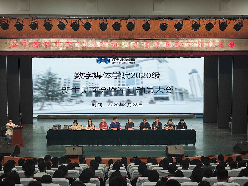 随后,教学副院长黄珍为同学们介绍了学院的教学工作架构、今后的选课过程和课程的考核方式并鼓励同学们多参加竞赛,提高自己的专业技能;姚林老师介绍了就业工作,霍峒宇老师介绍了分团委、学生会的情况;各位专业主任为同学们介绍了各个专业所要学习的专业知识、专业技能以及就业方向;团学办荆波主任做了学生军训动员。荆主任阐述了大学生参加军训的重要性、详细介绍军训内容和军训注意事项;学生会主席丁雨博代表在校生发言;2020级数字媒体技术一班马世超代表新生发言。