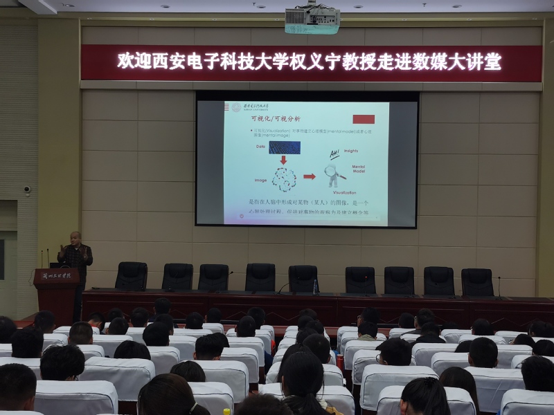 为加强专业建设,提高人才培养质量,永利3044noc于2020年10月10日晚举办了《数媒大讲坛》活动,学院邀请了西安电子科技大学权义宁教授走进《数媒大讲坛》,为永利3044noc大数据专业群的19、20级软件工程、数据科学与大数据专业的学生做了题为“大数据可视化及应用”的学术报告,报告会由永利3044noc院长李恒杰教授主持。