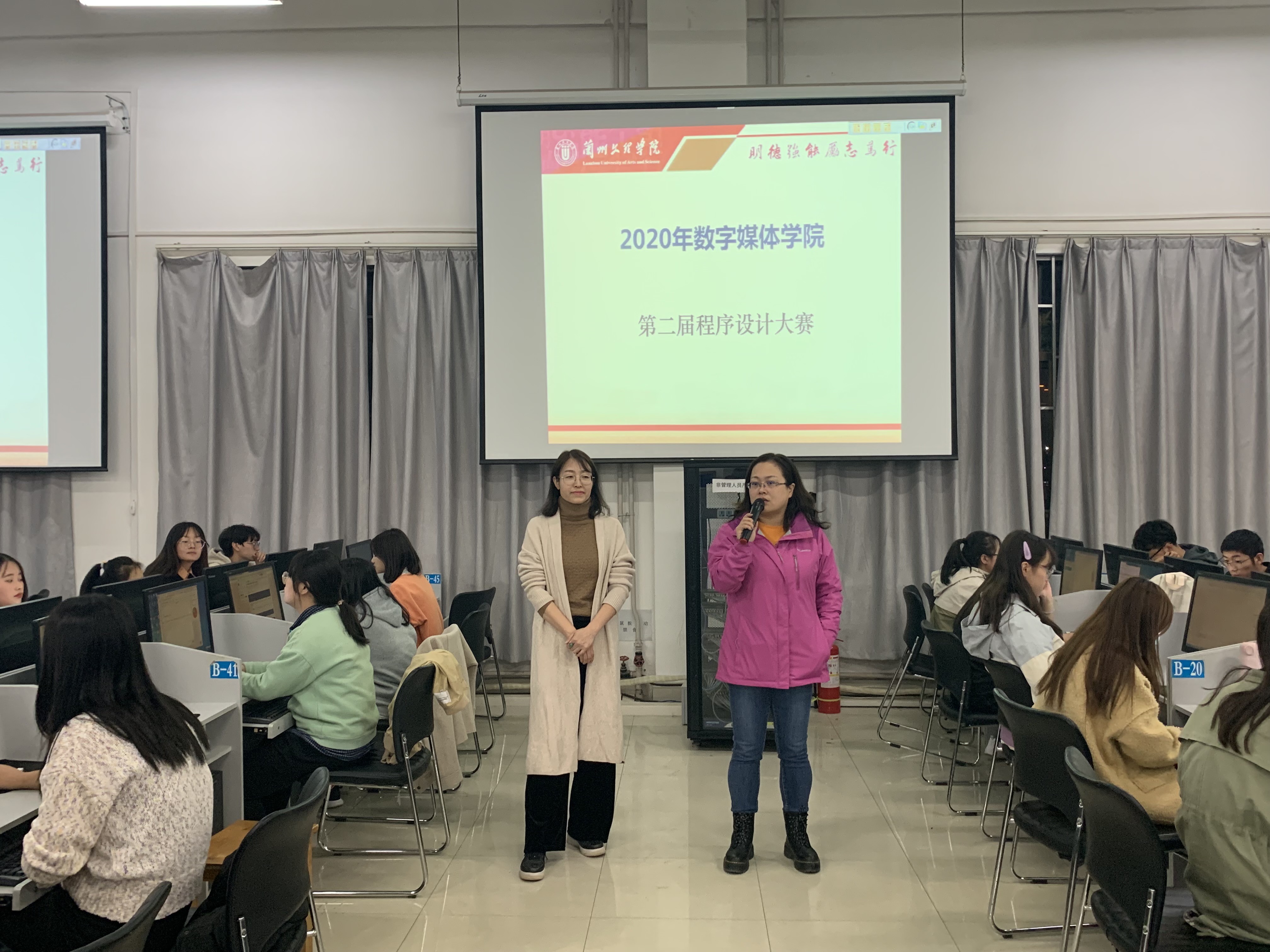 为进一步提高大学生综合素质和程序设计水平,提高学生的思维能力,动手实践能力,检验我院学生的程序设计能力,培养良好的学习交流氛围,帮助同学们提前适应如蓝桥杯、全国高校计算机天梯赛等校外程序设计比赛,永利3044noc于2020年10月19日晚上7点30分在综合楼104机房举办“永利3044noc2020年第二届程序设计大赛”,本次大赛共有一百多名同学参加,其中包括软件工程、数据科学与大数据技术、数字媒体技术各专业各年级学生。学院副院长黄珍、软件与大数据教研室主任张云、学院竞赛秘书刘瑒老师参加开赛仪式并分别讲话。