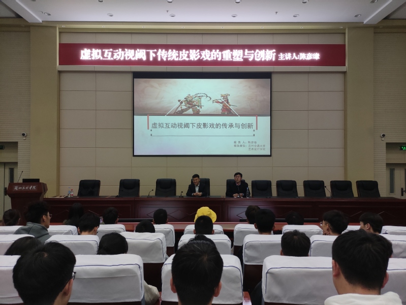 报告伊始,报告人首先向同学们抛出了VR虚拟互动这一概念,他介绍到:虚拟互动是一种最为前沿的技术应用 ,用户可以利用人体姿态传感器、头戴式显示器等虚拟现实装备将人与虚拟场景相连 ,在虚拟场景中实现对于其中物体的直接操作 ,并获得正确、实时、真实的反馈信息。随后又简单的介绍了皮影戏的发展与流派:皮影戏,又称“影子戏”或“灯影戏”,是一种以兽皮或纸板做成的人物剪影以表演故事的民间戏剧;根据皮影戏形式风格、皮影艺人迁徙、地理区域、风土人情等因素,中国的皮影戏大体可划分为北方皮影、西部皮影、中南部皮影。 最后点出了今天的主题:新时代皮影戏的传承与创新。通过报告向同学们介绍了皮影戏在虚拟互动领域发展的前景与遇到的挑战,进一步激发了同学们对传统文化的热情。现场学生积极进行交流互动。报告现场学习氛围浓重。