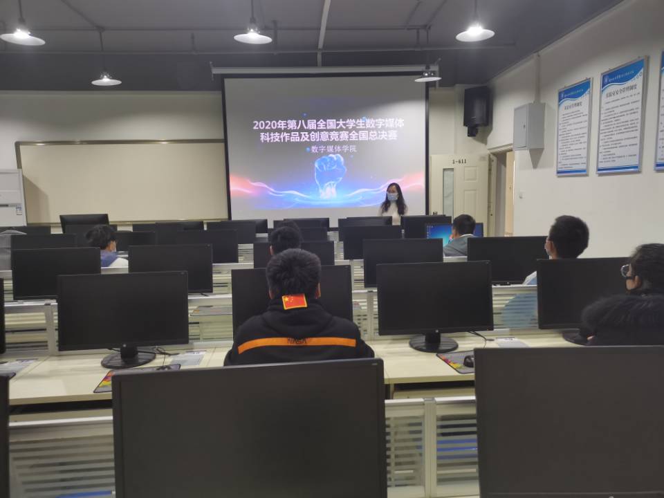 永利3044noc于2020年11月14日早上9:00在南校区1-611机房积极组织,配合学生完成“2020年第八届全国大学生数字媒体科技作品及创意竞赛全国总决赛”线上答辩。2020年第八届全国大学生数字媒体科技作品及创意竞赛全国总决赛采取“线上线下相结合”的方式进行,进入决赛答辩环节的参赛作品由参赛团队在线展示与答辩,评审专家线下集中、分组评审,确保了全国总决赛的公平、公正、公开。本次比赛我院共有五件作品进入全国总决赛,分别安排在不同的小组进行在线答辩,各位参赛选手全程参与了本次比赛活动,数字媒体技术教研室主任李岚副教授、学科竞赛负责人刘瑒老师进行了组织并观摩。