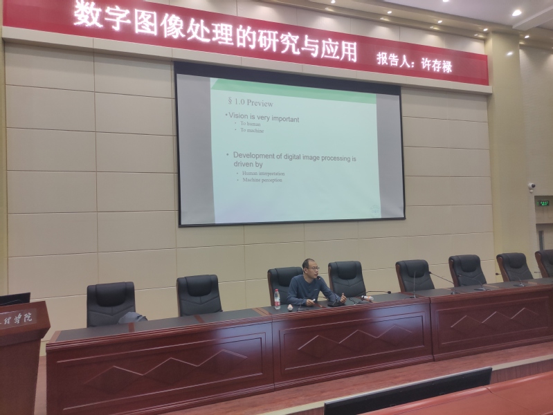 报告会上,许存禄副教授介绍到,数字图像处理是指使用数字计算机来加工、处理图像的一种技术。随后又深入介绍了数字图像处理的研究与各类应用场景、数字图像处理的现实意义以及其未来发展,他讲道:人类接收、表达、传递信息相对全面便捷的方式主要源于图像,随着计算机的迅猛发展,数字图像处理的应用无处不在,比如在遥感航空航天方面,生物医学工程方面,通信工程方面,工业和工程方面,军事方面等。许教授从数字图像处理的研究现状和内容出发,总结了数字图像处理的应用,并提出了数字图像处理的发展。许教授简洁而不失幽默的讲解不单是便于同学们对数字图像处理技术的应用有更多的了解,更是激发了同学们对数字图像处理研究的热情和兴趣。报告会现场学习氛围浓厚,听讲学生们积极与许教授进行交流互动,并提出对数字图像处理在今后的应用等方面的一系列问题,许教授做出了详细的解答,加深了学生们对数字图像处理的了解。