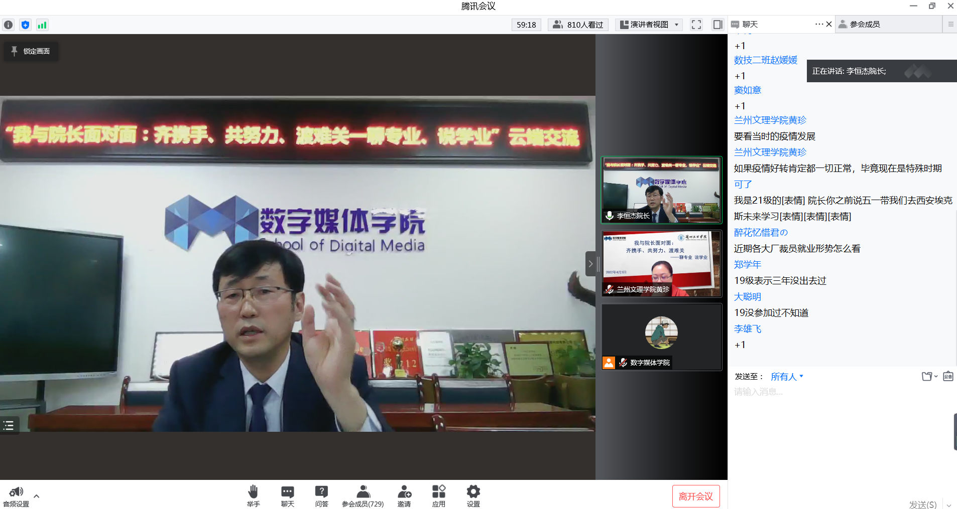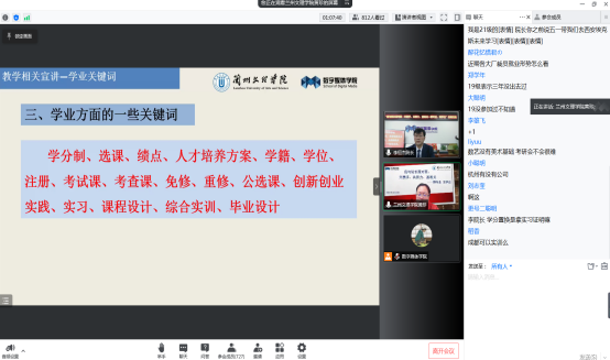 最后,学生们就学业和生活上的问题与李恒杰、黄珍二位院长进行踊跃互动,会场气氛热情洋溢。在本次活动中,永利3044noc按照教务处文件精神,认真制定活动方案,充分准备活动流程,整场活动历时两个多小时,院领导为学生们解疑释惑;在疫情封校的特殊时期,以线上交流的方式,帮助鼓励学生们以一个良好的心态面对困难、迎接挑战、师生共进、一起向未来。