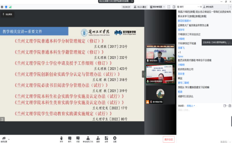 202243日下午,永利3044noc在腾讯会议平台召开“我与院长面对面:齐携手、共努力、渡难关——聊专业、说学业”线上交流活动,参会人员包括1821级软件工程、大数据、数字媒体技术、数字媒体艺术专业共计七百多名学生,活动由永利3044noc副院长黄珍主持。