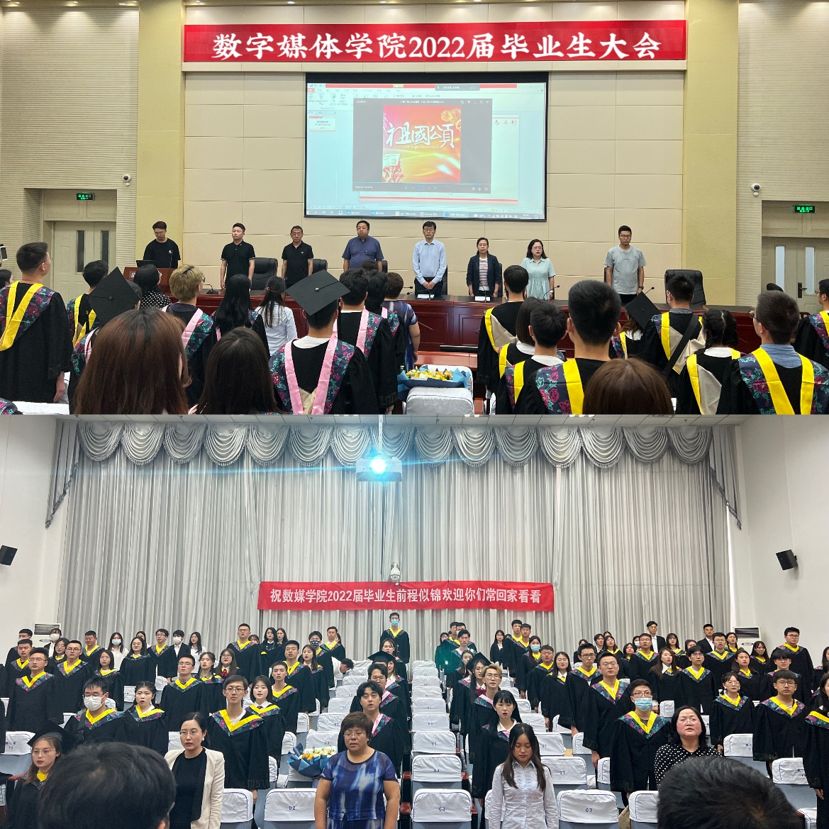 院长李恒杰向全体毕业生表示衷心的祝贺并做总结讲话,他说到,大学生活是人生中一笔丰厚的财富,在未来生活中希望各位同学不为名利所累,不为物欲所扰,要永葆昂扬姿态,坚守数媒精神,成就文理骄傲,让青春在实现中华民族伟大复兴的中国梦中绽放异彩。