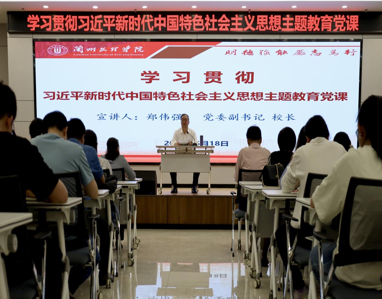 郑伟强从全面系统学习习近平新时代中国特色社会主义思想、“六个坚持”集中体现了马克思主义的世界观和方法论、“六个坚持”渗透在习近平新时代中国特色社会主义思想体系之中、将“六个坚持”转化为推动学校高质量发展的现实动力四个方面,结合学校、学院实际做了全面系统的讲授。勉励同学们要做“有理想、有追求、有担当、有作为、有品质、有修养”的六有好学生;勉励老师们做“有理想信念、有道德情操、有扎实学识、有仁爱之心”的四有好老师,做学生“锤炼品格、学习知识、创新思维、奉献祖国”的引路人;勉励干部做“信念坚定、为民服务、勤政务实、敢于担当、清正廉洁”的新时代好干部。